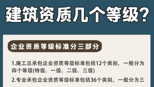想知道一家建筑工程公司的實力如何,最為直觀的方式就是查看其資質證書等級,建筑工程資質可以劃分為特級、一級、二級和三級......